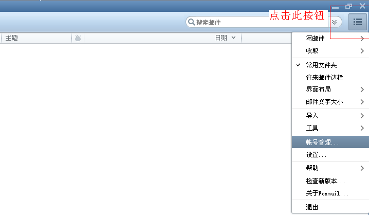 1、點擊Foxmail7.1頁面(miàn)右上角菜單按鈕,在下拉框中找到(dào)“賬戶管理”;