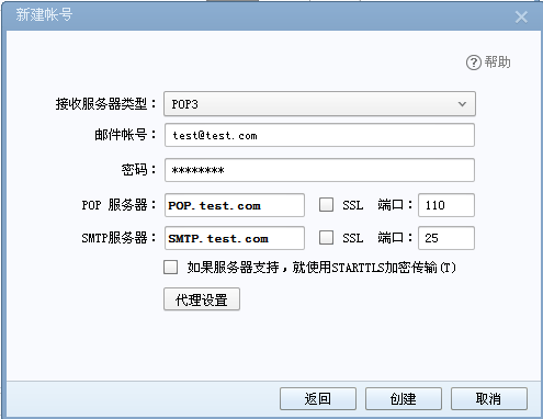 3. 郵件帳号請填寫自己的郵件地址全稱,POP服務器和SMTP服務器,都(dōu)填寫mail.你的網址.com,例:mail.i0575.cn ,密碼要和可登錄的密碼一緻。