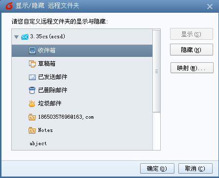 A:可以點擊郵箱賬戶的右鍵——》更多操作——》整理文件夾——》將(jiāng)對(duì)應的遠程文件夾“顯示”出來。